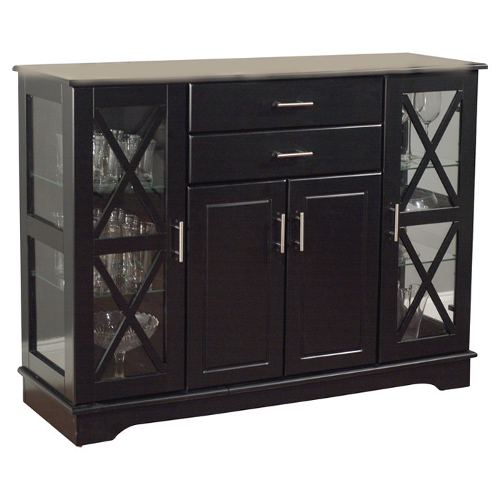 Create more space in your dining room or living room with this Black Wood Buffet Dining-room Sideboard with Glass Doors that will match with any decor. This buffet offers both glass and solid doors a classic style. The X style door features two adjustable tempered glass shelves on each side.